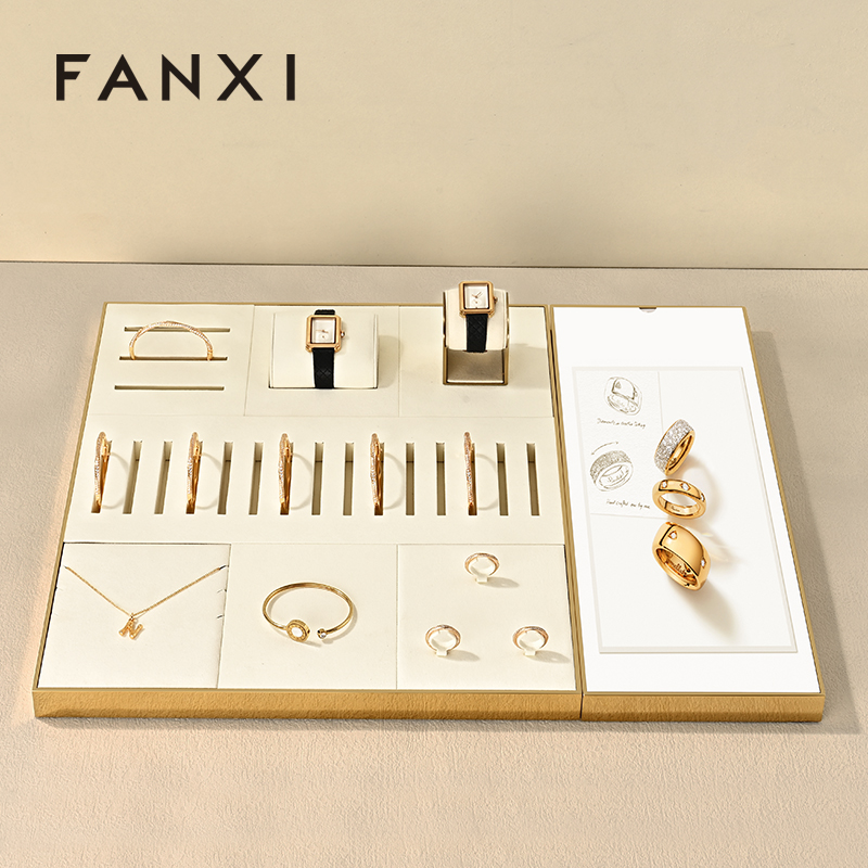 P194 FANXI Hot sale Beige Metal Jewelry display tray
