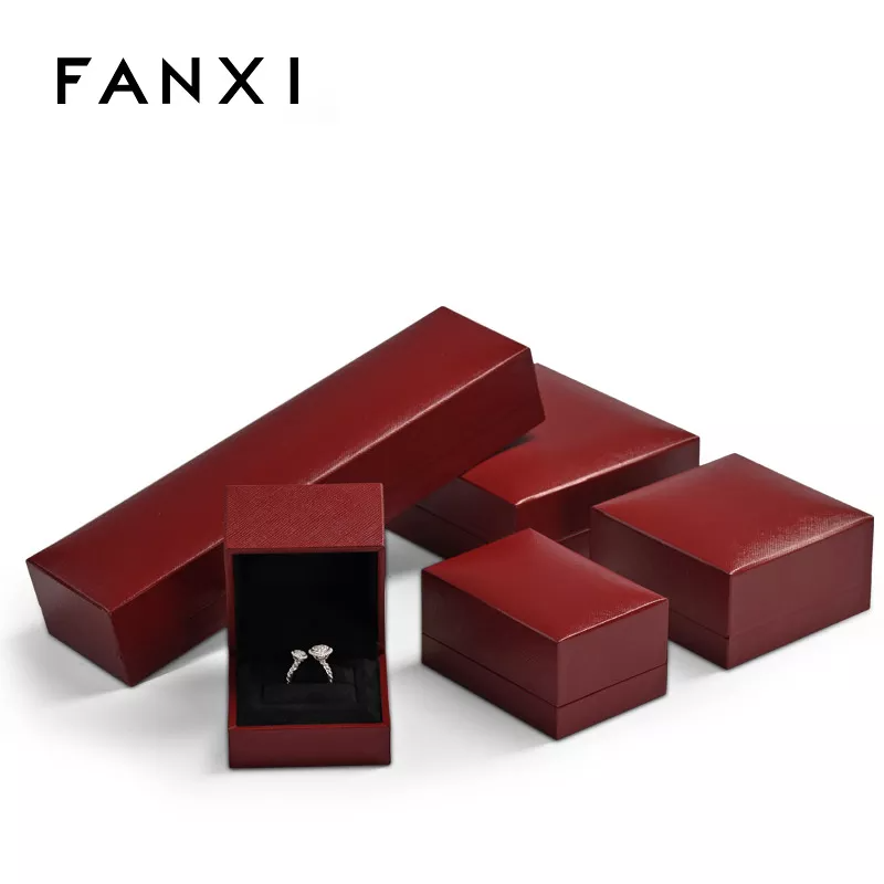 FANXI Custom logo red leatherette paper jewelry packaging box