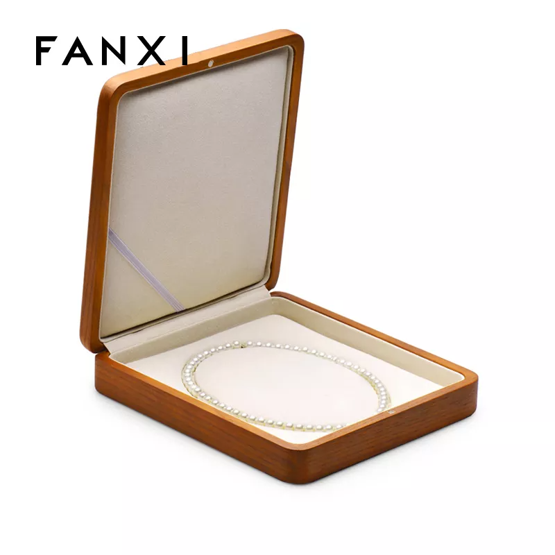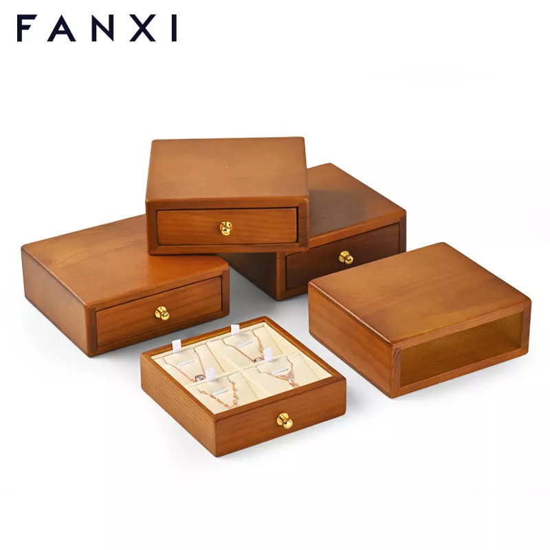 FANXI Wooden jewelry organizer storage case with cream microfiber inside