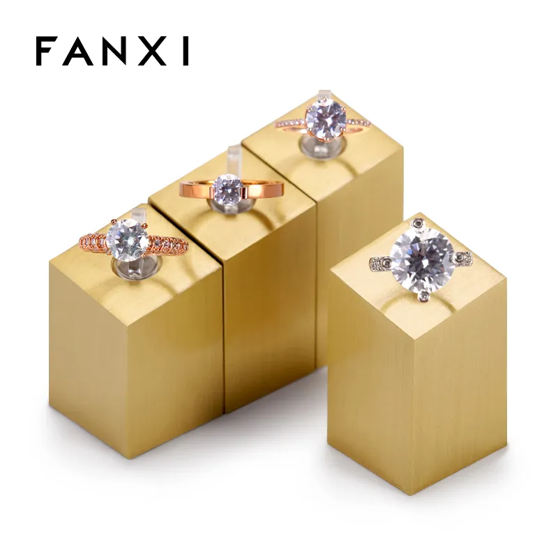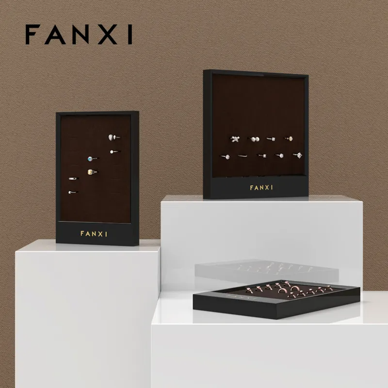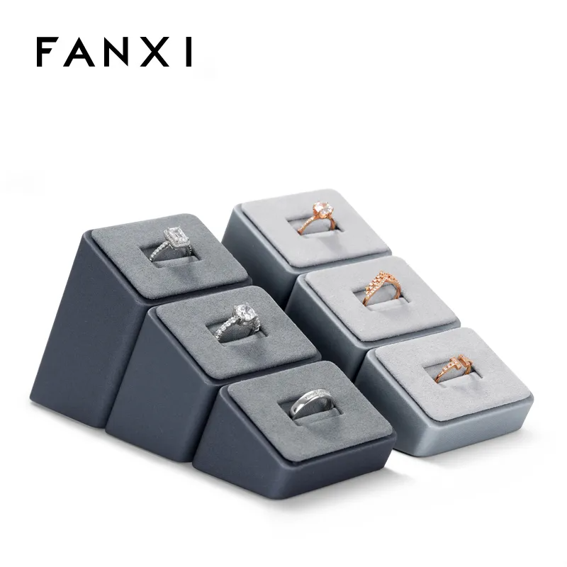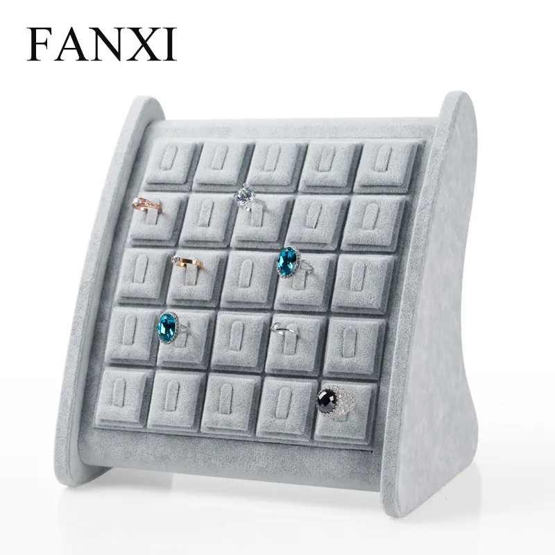 FANXI Wholesale Silver Grey Ice Velvet Jewelry Display Shelf Stand 25 Ring Holders Board Ring Display Holder Stand