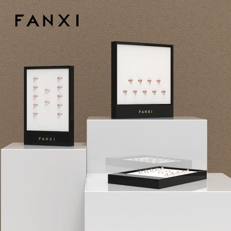 FANXI Gray PU leather jewelry ring exhibitor stand