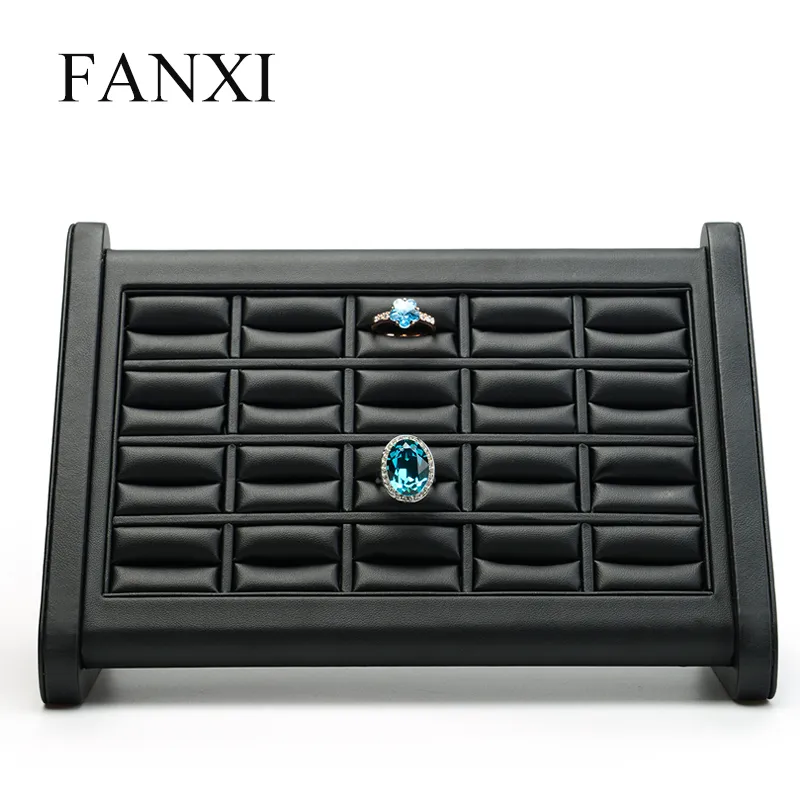 FANXI Black PU Leather Jewelry Exhibitor Organizer For 20 Rings Holder Ring Display Props