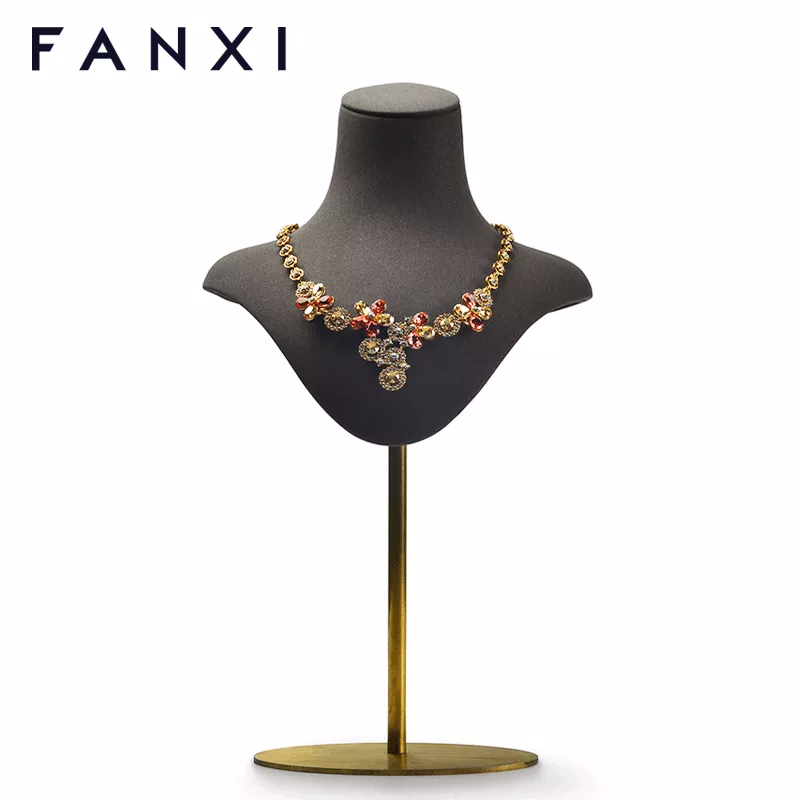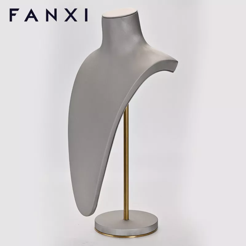 FANXI Wholesale Custom Jewelry Display Mannequin With Metal Base And Rack For Necklace Pendant Showcase Luxury Leather Necklace Bust