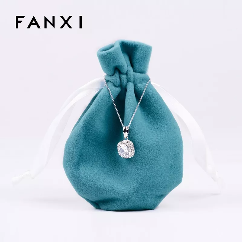 FANXI China Wholesale Custom logo black white Velvet Jewelry Drawstring Pouch Bag Round Bottom Gift Bags