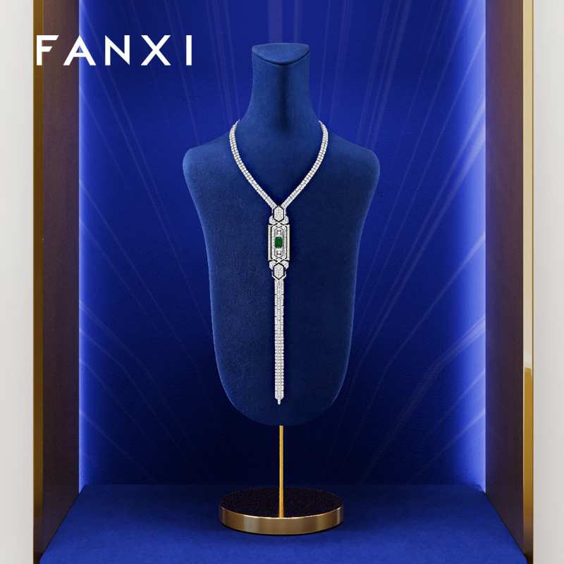 FANXI new arrival blue Microfiber necklace displays